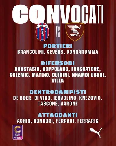 Casarano - Salernitana: i convocati