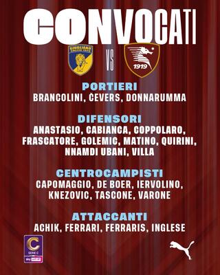 Salernitana - Audace Cerignola, i convocati: out Cabianca