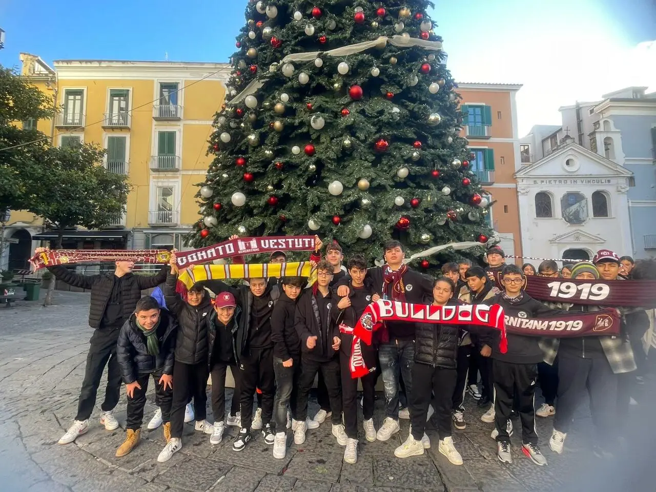 Si è tenuta questa mattina la “Passeggiata Granata School Edition”, evento organizzato dall'associazione di promozione sociale “Macte Animo 1919” in collaborazione con la scuola media Alberto Pirro di Salerno. Appuntamento a Piazza della Libertà dove si sono ritrovati gli studenti delle classi terze dello storico istituto scolastico della city, accompagnati dai rispettivi docenti, ed il presidente di Macte Animo 1919 Umberto Adinolfi. Un trekking urbano tra la storia della città di Salerno e quella della squadra di calcio che ha visto toccare i punti più caratteristici del centro storico. Quasi due ore di cammino e soste, iniziando da piazza della Libertà per poi proseguire per il teatro Giuseppe Verdi, via Roma, Via Mercanti, Via Botteghelle, Largo Abate Conforti e via Duomo, con tappa finale in piazza Portanova. Tante le storie e i racconti che hanno appassionato sia gli studenti – armati di sciarpe granata – che gli stessi prof. Una mattinata intensa che ha strappato sorrisi anche ai cittadini salernitani ed ai commercianti, sorpresi per una carovana tutta granata che ha attraversato le vie del centro storico.