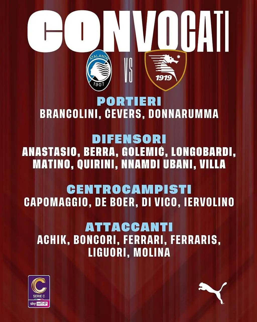 Atalanta U23 - Salernitana, i convocati: out Tascone