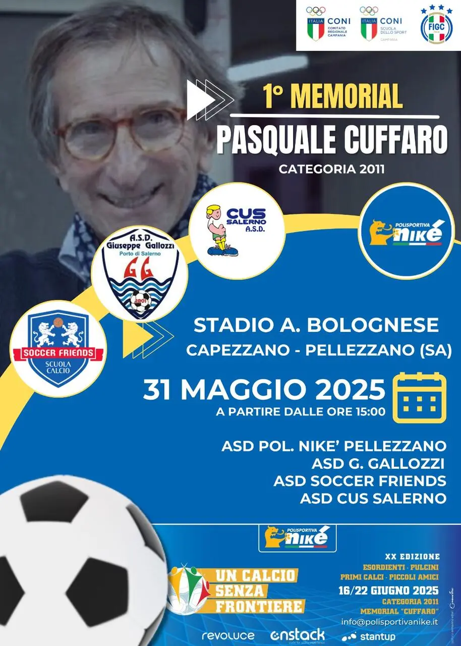 Sabato 31 maggio 2025, alle ore 15:00, lo Stadio “Andrea Bolognese” di Capezzano – frazione di Pellezzano (SA) – si trasformerà in un palcoscenico speciale per celebrare il ricordo del Prof. Pasquale Cuffaro, figura di spicco nel mondo sportivo e culturale locale. A un anno dalla sua scomparsa, la Polisportiva Nikè Pellezzano ha deciso di dedicargli un quadrangolare di calcio giovanile, coinvolgendo le nuove generazioni nello spirito che ha sempre animato la sua instancabile attività.