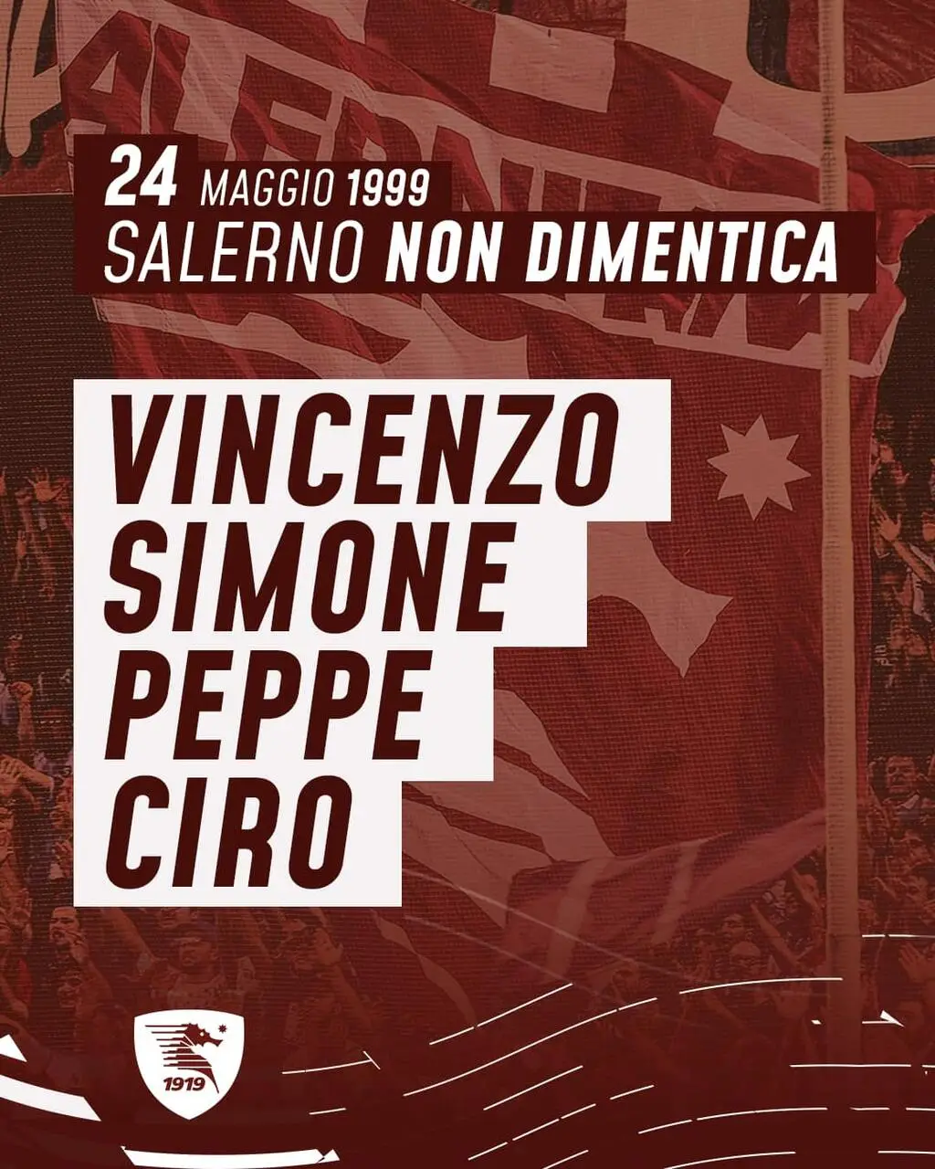 Il giorno della memoria. 25 anni fa ci fu un evento che ha segnato in modo indelebile la storia della città di Salerno, il giorno del tragico incendio del treno Piacenza-Salerno del 24 maggio 1999: di ritorno da una trasferta amara, persero infatti la vita Giuseppe Diodato, Ciro Alfieri, Vincenzo Lioi e Simone Vitale a causa di un rogo divampato sul treno che ha spezzato la vita di quattro giovani ragazzi e delle loro famiglie, lasciando un vuoto incolmabile nei cuori di tutti i cittadini di Salerno. Oggi, come da tanti anni a questa parte, la società granata ricorda i 4 angeli con un post commemorativo sui propri canali social.