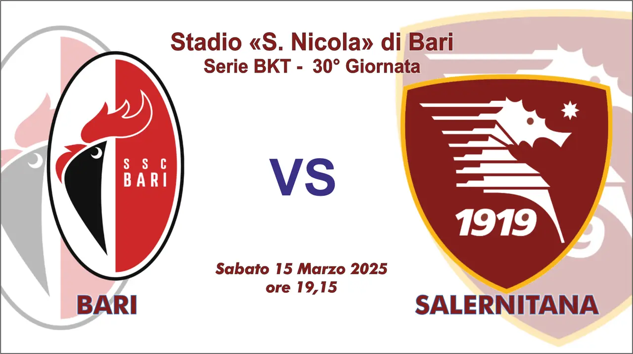 La Salernitana per la 30' giornata del campionato di serie BKT è di scena al S. Nicola di Bari, in un match che, dal punto di vista dei tifosi serve per rinnovare un antico gemellaggio che dura da oltre 40 anni, da quello sportivo invece, i granata sono chiamati, vista la situazione di classifica, a tentare di centrare la posta piena in palio per continuare la lotta per la salvezza, non sarà facile, ma gli uomini di Roberto Breda, hanno il dovere di tentare il colpaccio.