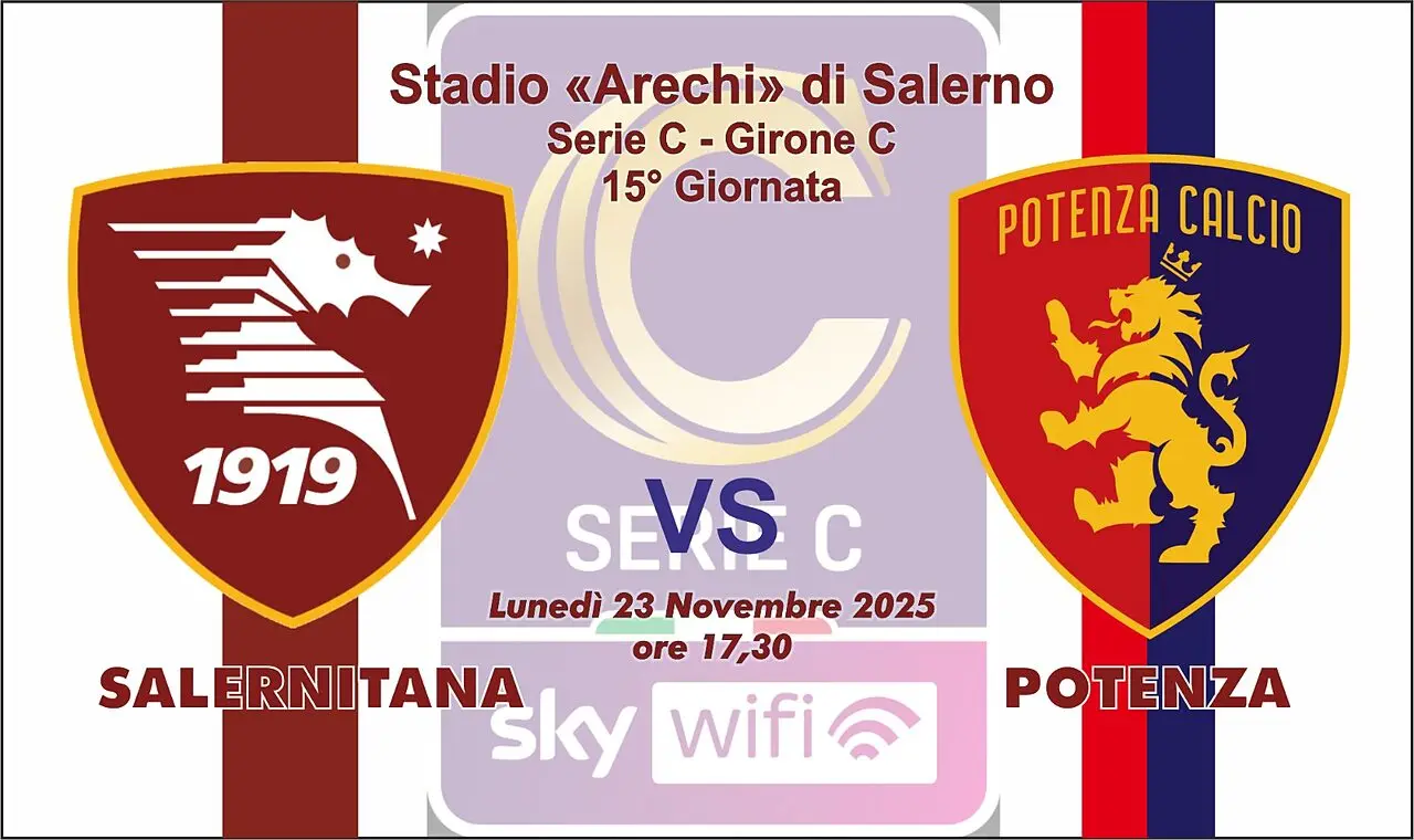 SALERNITANA - POTENZA, 15^ giornata Serie C girone C, domenica 23 novembre 2025, stadio “Arechi”, ore 17:30.