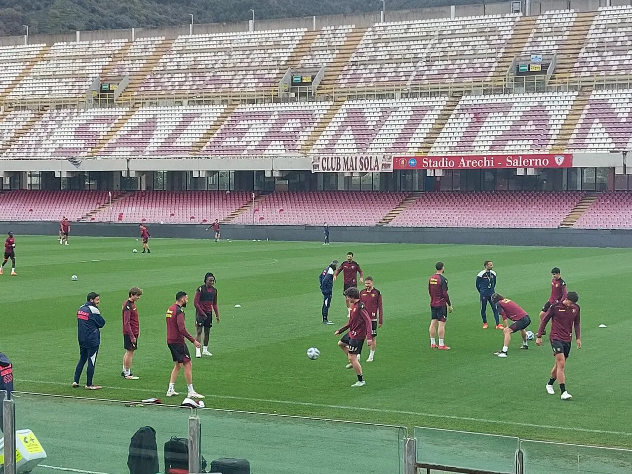Meno di un centinaio di tifosi presenti questo pomeriggio per l'allenamento a porte aperte istituito dalla società granata all'Arechi dopo la fondamentale vittoria contro il Modena ottenuta lo scorso sabato. Per la truppa granata in programma adesso un'altra impegnativa sfida, quella del San Nicola di sabato sera (ore 19:30) contro il Bari di Longo, pienamente in lizza per l'obiettivo play-off. Le condizioni meteo avverse hanno impedito un'affluenza maggiore allo stadio, ma i pochi tifosi presenti non hanno lesinato applausi per i giocatori granata. Lochoshvili ha preso una botta alla caviglia ed ha svolto allenamento differenziato, ma domani si allenerà nuovamente in gruppo, mentre sia Caligara che Jaroszynski hanno problemi alla schiena e sono da valutare in vista di Bari.