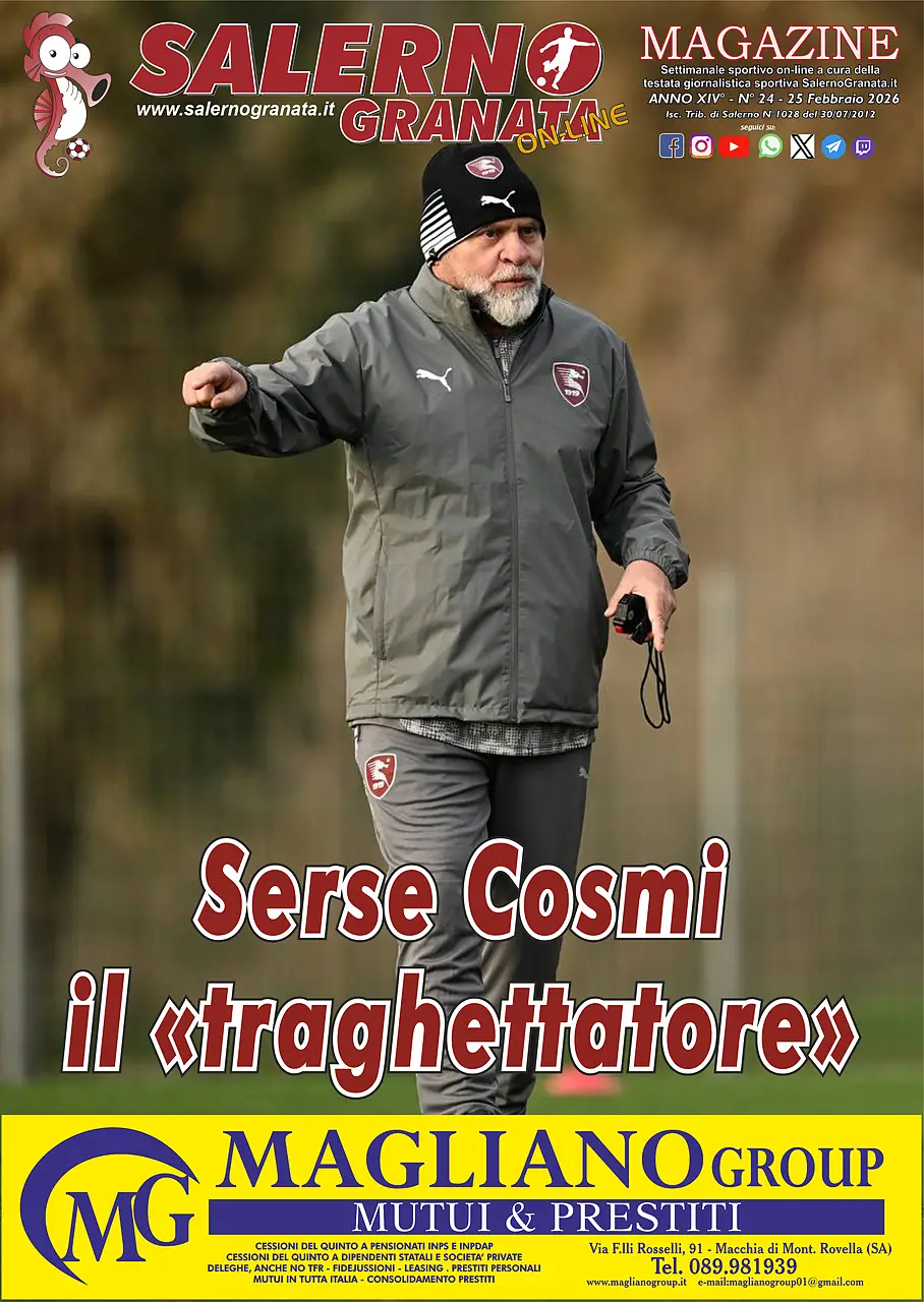 Home / Magazine SalernoGranata SalernoGranata Online numero 24 Il magazine online edito dalla redazione. Rocco Calenda / 25 February 2026, 10:19 Twitter Facebook Whatsapp Telegram Email Per scaricare il MagazineClicca QUI
