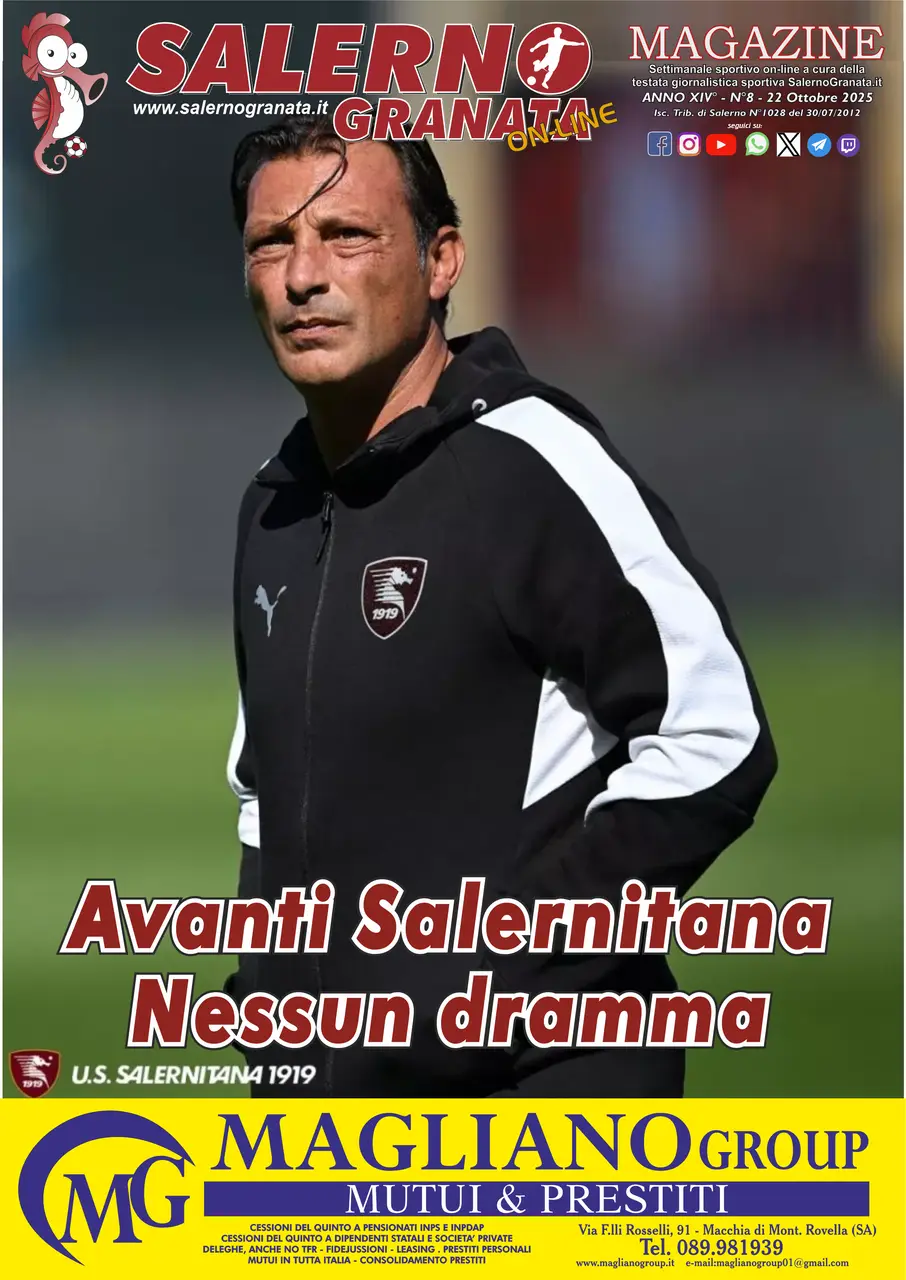 Home / Magazine SalernoGranata SalernoGranata Online numero 8 Il magazine edito dalla redazione Rocco Calenda / 22 October 2025, 11:56 Twitter Facebook Whatsapp Telegram Email Per scaricare il MagazineClicca QUI