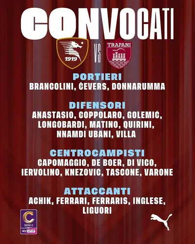 Salernitana obbligata a vincere contro il Trapani: Raffaele si affida al 3-5-2 con Longobardi e il ritorno di Inglese dal 1’