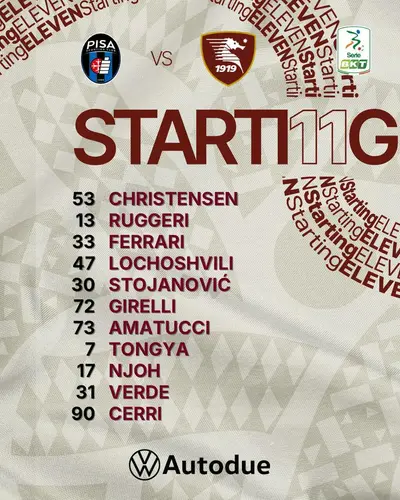 Pisa-Salernitana: Christensen e Caligara titolari, ballottaggio Raimondo-Verde per affiancare Cerri