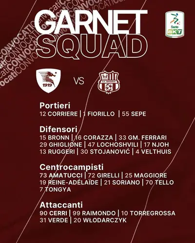 Salernitana - Reggiana, i convocati: fuori Torregrossa
