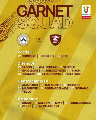 Al termine della seduta di rifinitura il mister Giovanni Martusciello ha diramato la lista dei convocati per la gara in programma domani tra Udinese...
